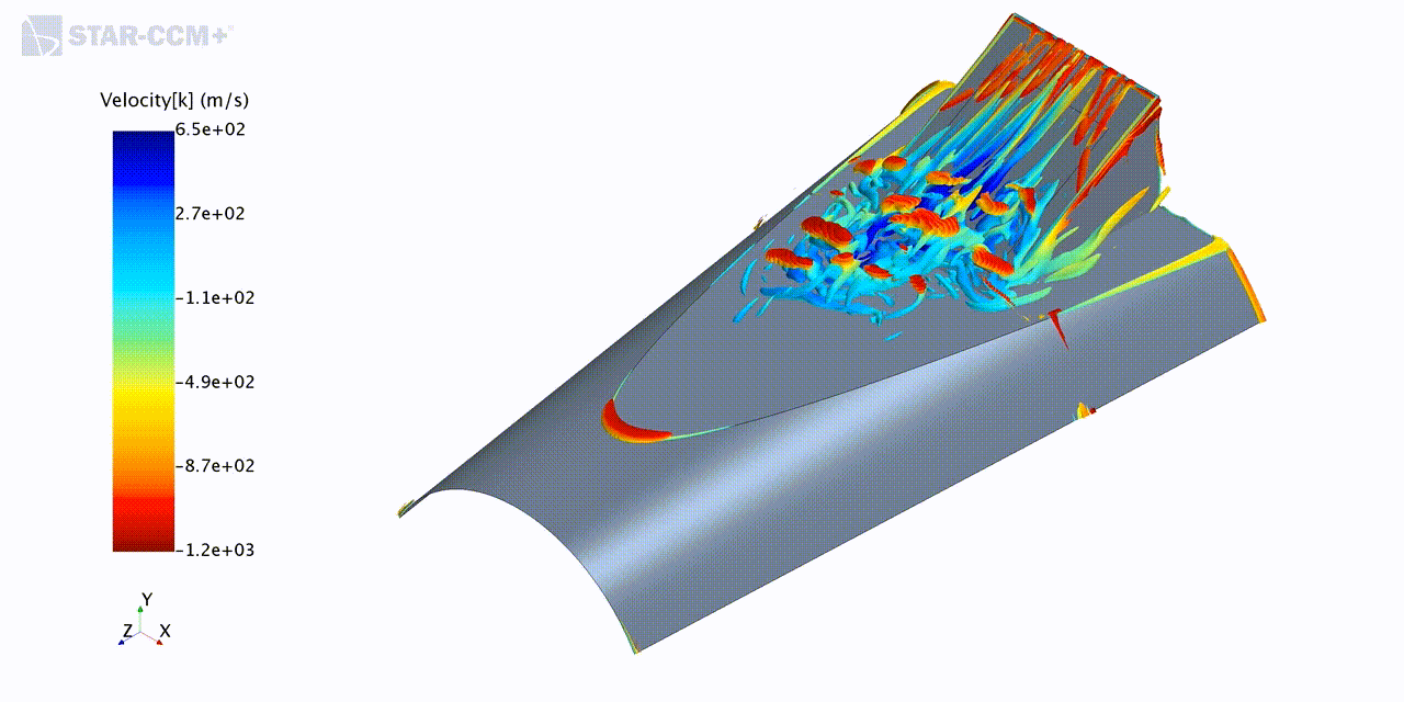 - The predictions show all the major flow features generated on the CSR with low-frequency oscillation and the shear layer flapping at a higher frequency, as well as upstream and downstream legs of streamwise vortices that cannot be easily observed in the experiment.